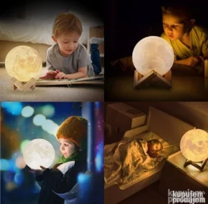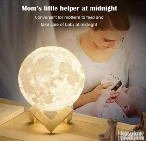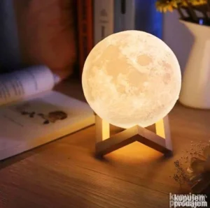 3D Mesec lampa (Moon Lamp) je dekorativna LED sobna lampa dizajnirana pomoću 3D štampe kako bi verno prikazala površinu pravog Meseca – sa kraterima, planinama i realistično oblikovanim detaljima.