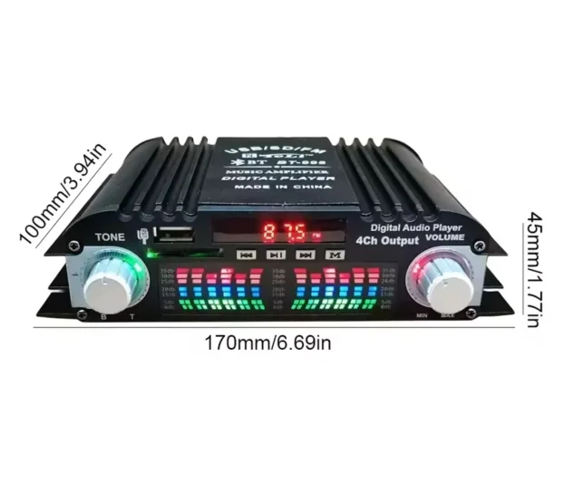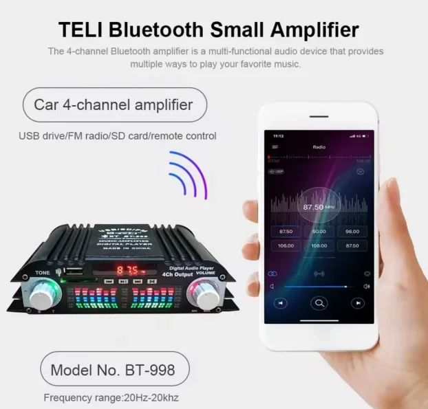 Unapredite svoje audio iskustvo uz vrhunsko 4-kanalno Bluetooth HiFi pojačalo snage 4x40W. Ovo svestrano digitalno pojačalo donosi visokokvalitetan zvuk i brojne opcije povezivanja, idealno za automobil, kućni bioskop ili zabavu na otvorenom.
