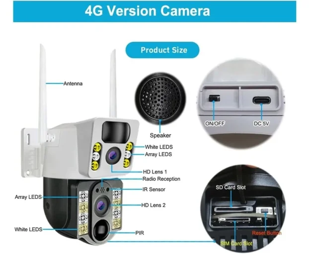 Ova 4G kamera sa dva sočiva omogućava snimanje u širokom uglu i praćenje prostora do 345°.
