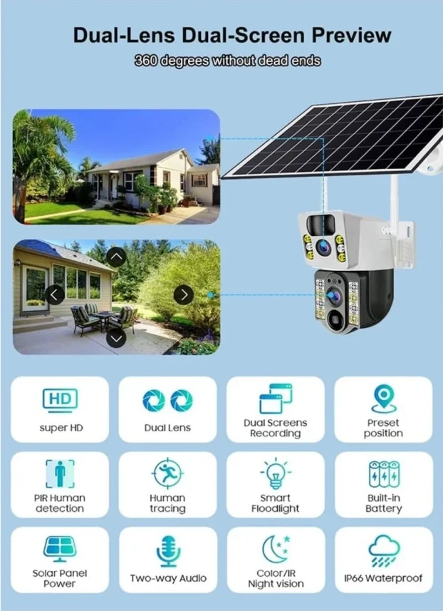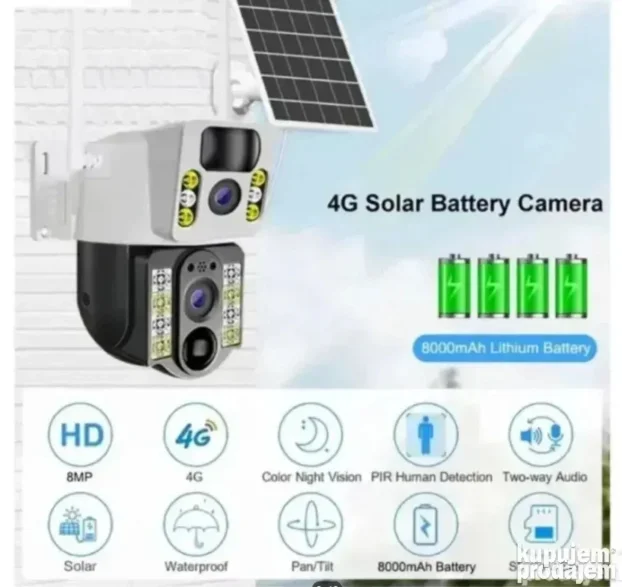 4G Solarna Kamera sa Dva Sočiva – Siguran Nadzor Svuda!