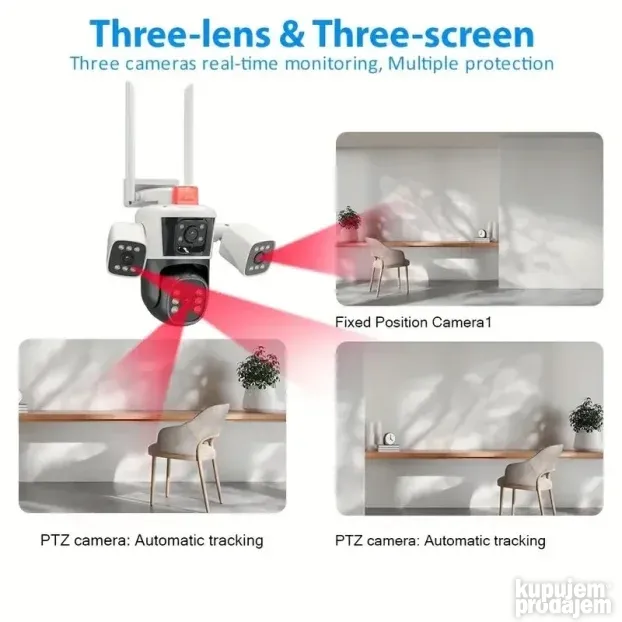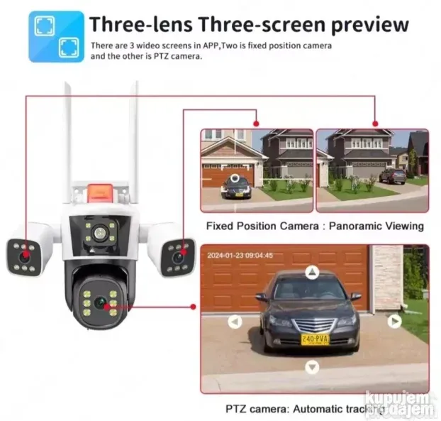 Ova kamera omogućava detaljan i pouzdan nadzor, čak i u uslovima slabog osvetljenja. Idealna je za one koji žele sigurnost doma, poslovnog prostora ili porodičnog objekta. Praćenje u tri kadra u realnom vremenu omogućava da ništa ne promakne.