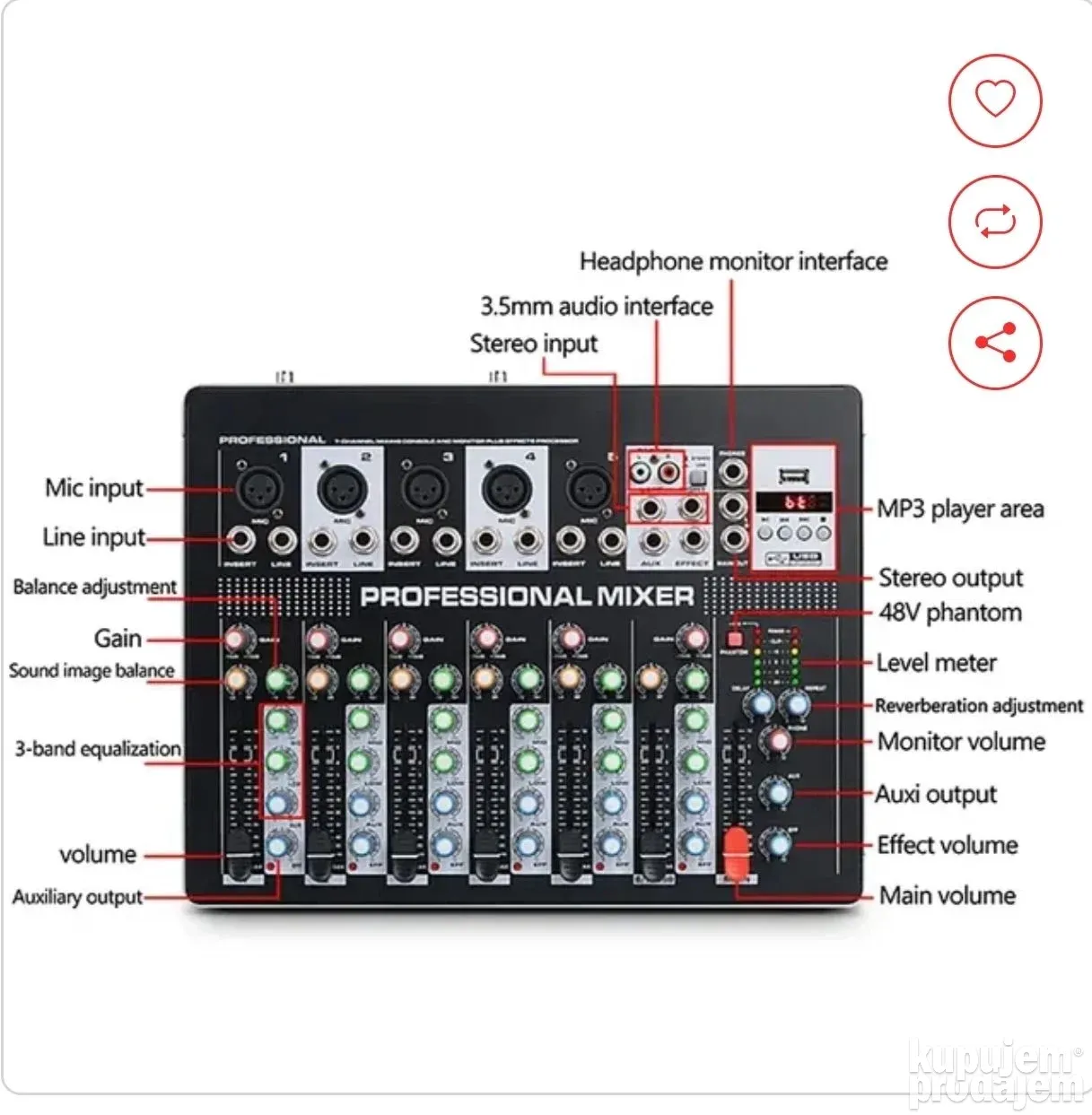 ✔ 7 kanala za višestruke ulaze i fleksibilnu kontrolu zvuka