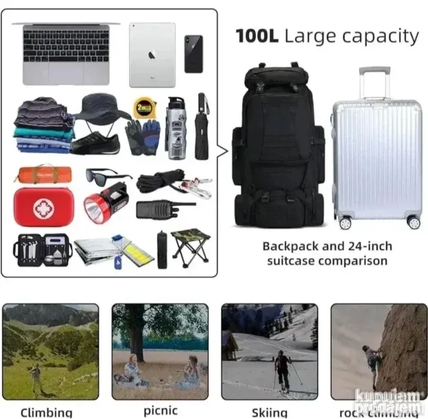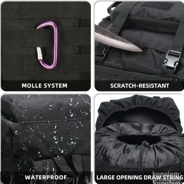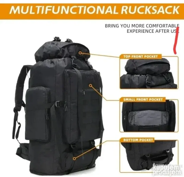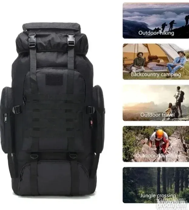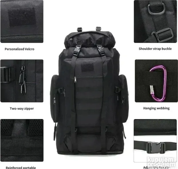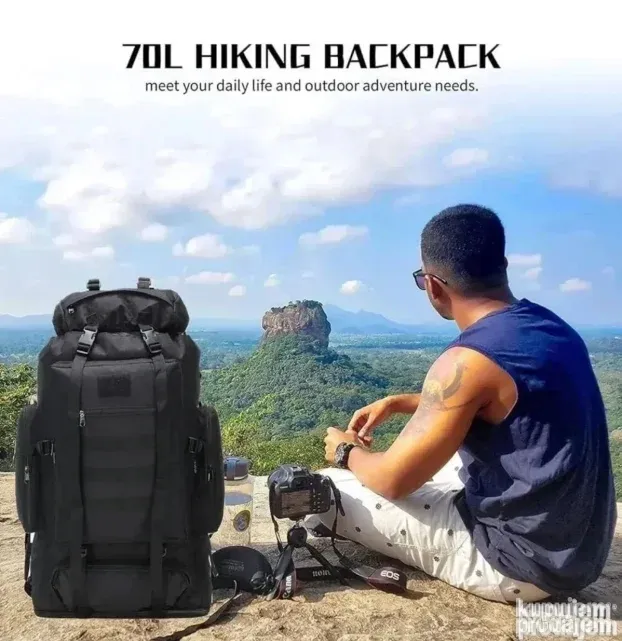 Tražite izdržljiv i prostran ranac za vaše avanture? Ovaj veliki taktički ranac od 70L u crnoj boji je idealan za airsoft, lov, ribolov, planinarenje i kampovanje.