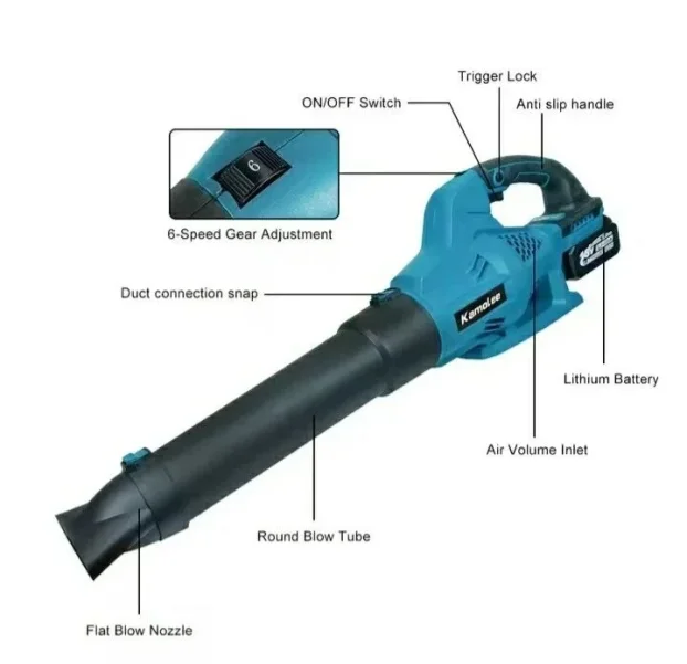 Predstavljamo snažan aku duvač lišća sa dve 168V baterije i 6 podesivih brzina, idealan za brzo i efikasno čišćenje dvorišta, garaža i radionica. Ovaj bežični električni duvač lišća kombinuje visoku efikasnost sa praktičnim dizajnom, pružajući vam kontrolu i snagu potrebnu za održavanje vašeg prostora.