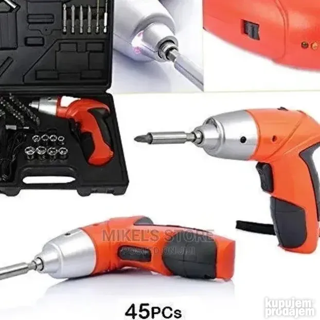 Ako vam je potrebna praktična i višenamenska aku šrafilica, ovaj set je pravi izbor. U pitanju je lagana i kompaktna električna šrafilica koja dolazi sa čak 45 različitih nastavaka, uključujući krstaste, ravne i nastavke za razne vrste šrafova.