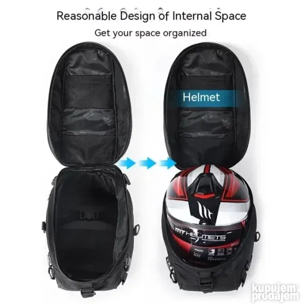 U slučaju kiše, tu je vodootporna navlaka koja štiti vaše stvari od vlage i prljavštine. Zahvaljujući mogućnosti proširenja zapremine, torba nudi dodatni prostor kada vam je najpotrebniji. Dizajnirana je tako da savršeno pristaje zadnjem sedištu većine motora i pruža sigurno i stabilno pričvršćivanje tokom vožnje.