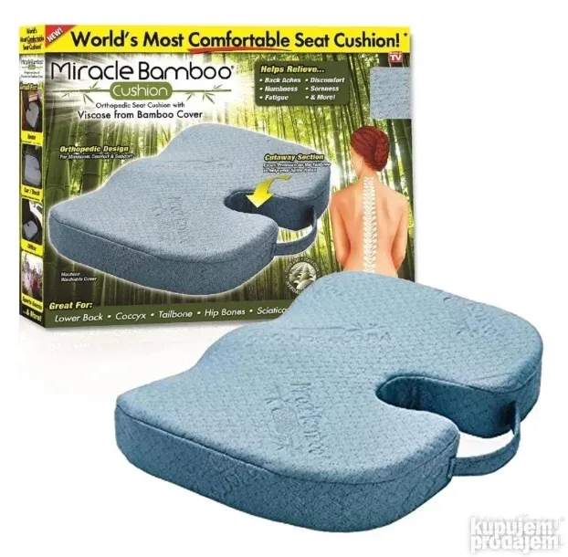 Želite da sedite bez bolova? Ovaj ergonomski jastuk od memorijske pene sa bambusovom presvlakom je rešenje! Ublažava pritisak na kičmu i trtičnu kost, poboljšava držanje i cirkulaciju. ‍♀️ Neophodan za rad za računarom i duga putovanja!