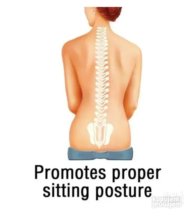 Jastuk je dizajniran da se oblikuje po obliku vašeg tela, vraćajući se u prvobitno stanje kada se ne koristi. Ovaj ergonomski oblik ublažava pritisak na kičmu, kukove i posebno na trtičnu kost, čime efikasno smanjuje bolove uzrokovane dugotrajnim sedenjem.