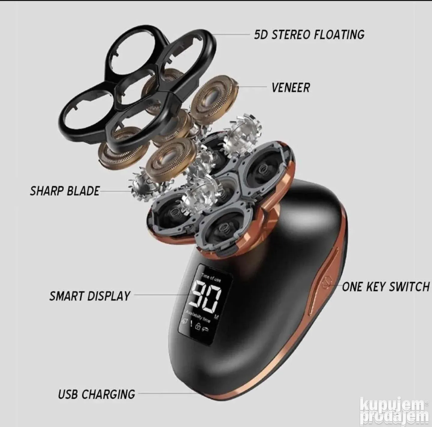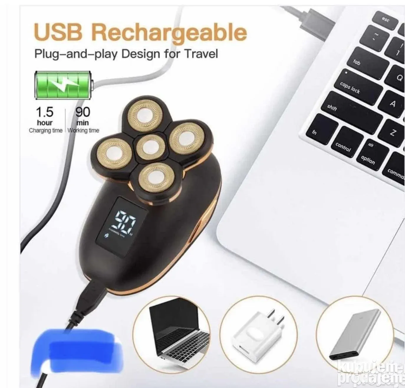 Aparat za brijanje 5 u 1 je praktičan i snažan uređaj za svakodnevnu negu. Radi na punjivu bateriju koja se puni 60 minuta, a zatim omogućava do 150 minuta rada. To pokazuje da je baterija kvalitetna i izdržljiva. Oštrice su od nerđajućeg čelika, samooštre se i otporne su na vlagu, pa aparat traje duže.