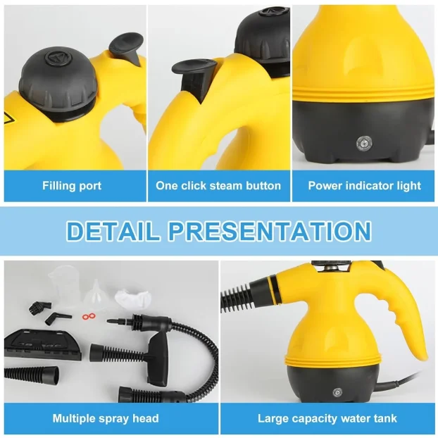 Rezervoar od 350 ml omogućava do 20 minuta neprekidnog čišćenja. Aparat se brzo zagreva za samo 3 minuta, a u paketu dolazi više mlaznica za precizno čišćenje. Lagan je i jednostavan za korišćenje, sa kablom od 3 metra koji omogućava lak pristup svim delovima prostorije.