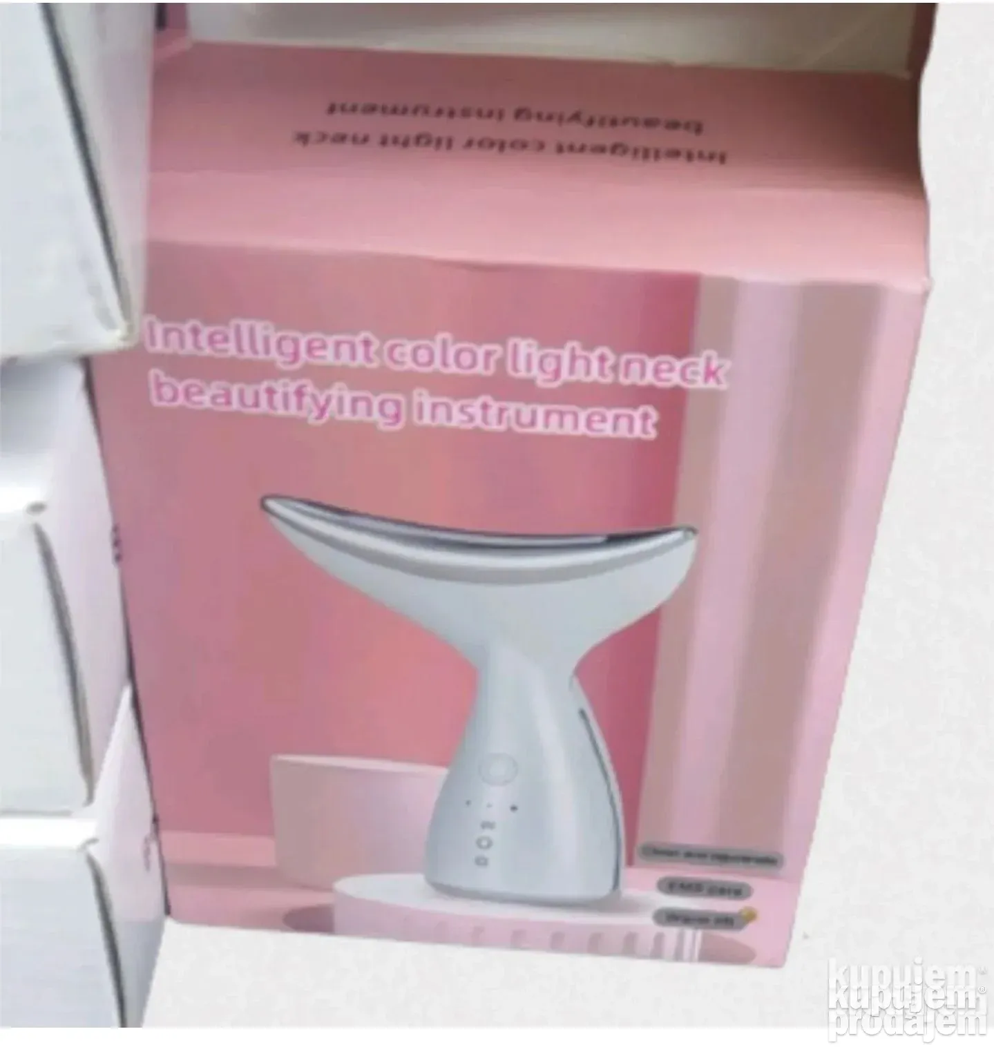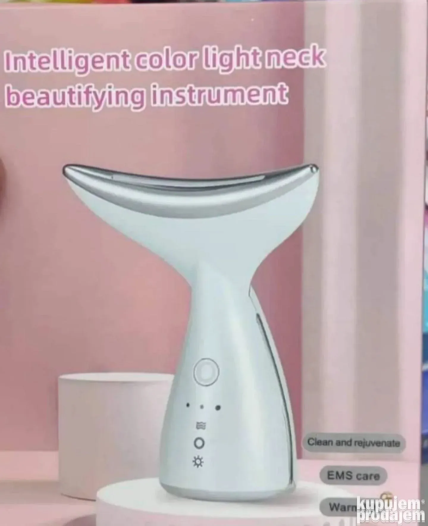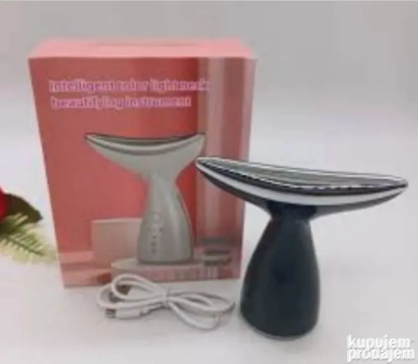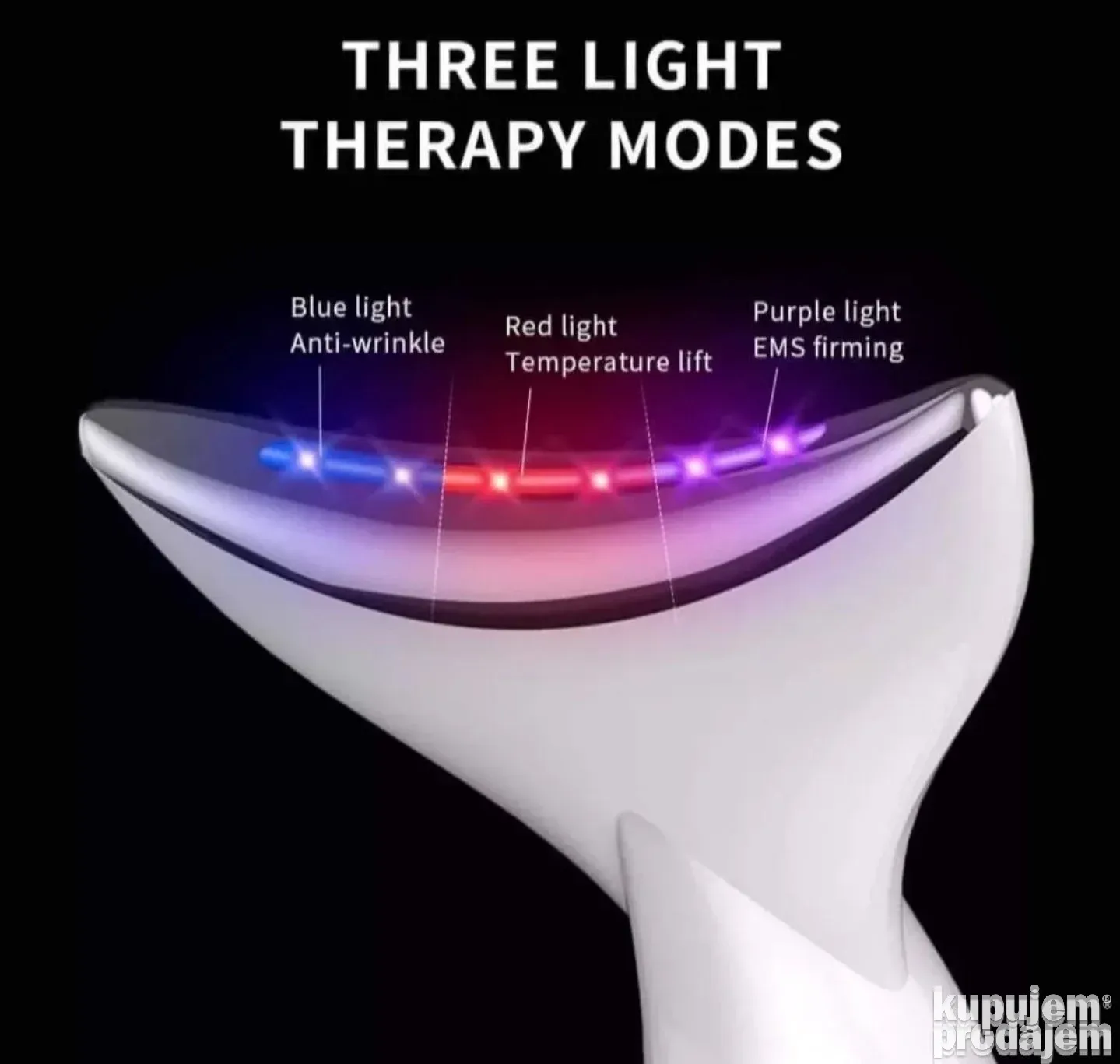 Aparat za uklanjanje bora i podmlađivanje kože kombinovani je LED fotonski uređaj + EMS masažer koji deluje na vrat, lice i područje ispod brade. Koristi vibracije, toplinu i fotonsku terapiju u tri boje kako bi zategao kožu, smanjio bore, poboljšao tonus i podstakao cirkulaciju.