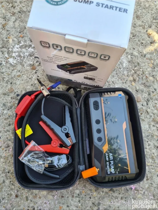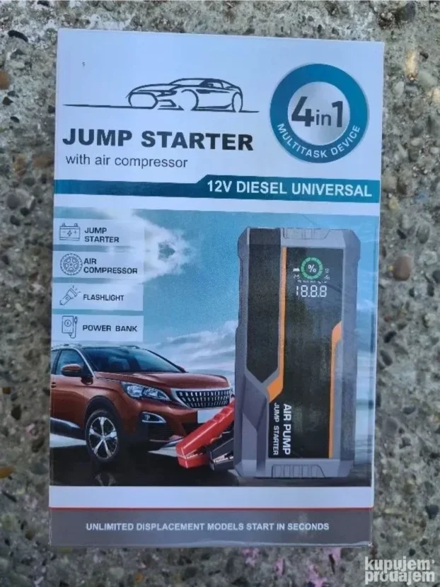 Ovaj multifunkcionalni starter sa kompresorom je esencijalni uređaj za svakog vozača, objedinjujući četiri ključne funkcije u jednom kompaktnom pakovanju. Bilo da vam je potrebno hitno pokretanje motora, naduvavanje guma, punjenje telefona ili svetlo u mraku, ovaj 4-u-1 uređaj je uvek spreman za akciju.