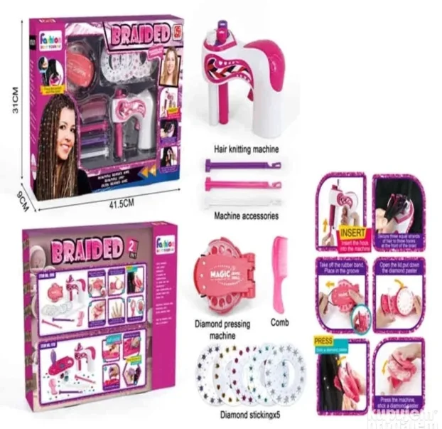 Predstavljamo ultimativni set za stilizovanje kose koji će obradovati svaku devojčicu! Zaboravite na mukotrpno ručno pletenje – uz ovaj automatski aparat, savršene pletenice i blistavi cirkoni su tu za tren oka. Ovaj 2-u-1 komplet kombinuje zabavu i kreativnost, idealan za rođendane, žurke ili svakodnevnu igru. Dajte svojoj kosi novi, glamurozni izgled!