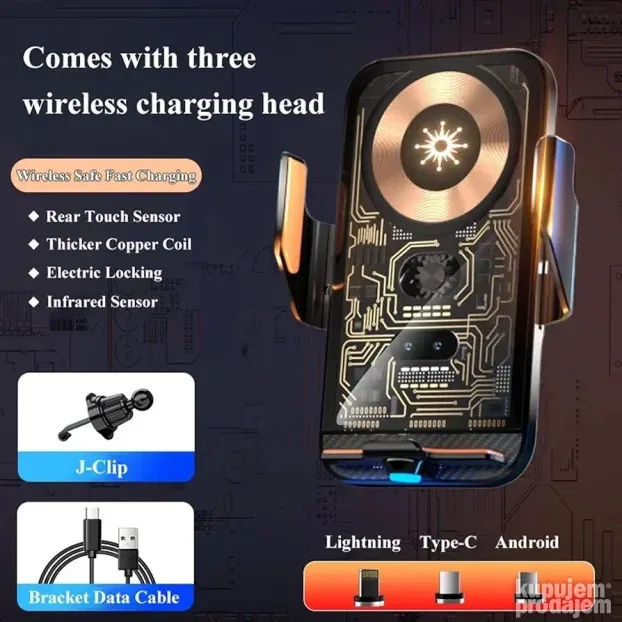 Ovaj bežični punjač sa držačem za automobil pruža jednostavno i sigurno držanje telefona dok se puni. IR senzor omogućava automatsko otvaranje i zatvaranje držača. Stavite telefon u držač, a kopča će se automatski zatvoriti. Pritiskom dugmeta brzo izvadite telefon.