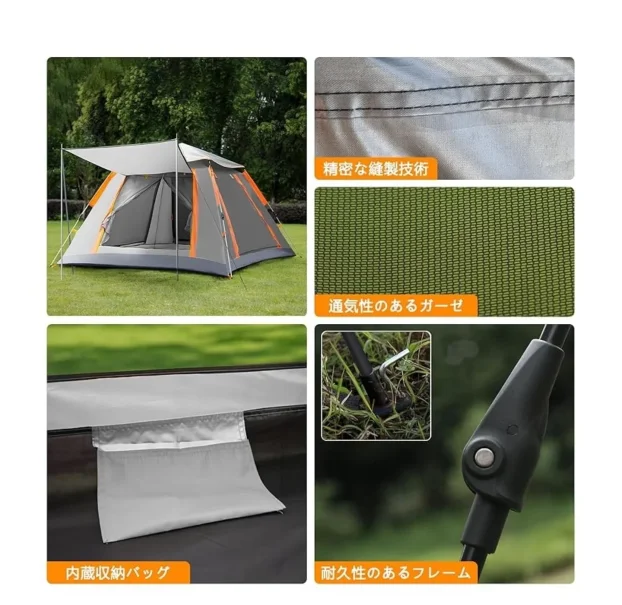 Ovaj automatski šator kombinuje praktičnost i otpornost: konstrukcija sa fiberglas šipkama i automatskim mehanizmom omogućava trenutno postavljanje bez napora, što ga čini idealnim rešenjem za brze izlete i promene lokacije. Materijal 210D Oxford pruža pouzdanu zaštitu od kiše, dok je UV otporna tkanina osmišljena da smanji štetne uticaje sunčevih zraka.