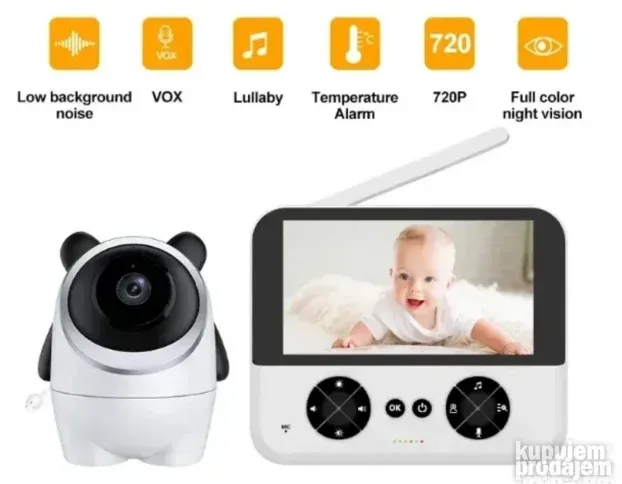 Prikaz sobne temperature omogućava kontrolu toplote u sobi. Dvosmerni audio vam dozvoljava da umirite bebu bez odlaska u sobu. Ugrađene uspavanke dodatno pomažu u smirivanju deteta.