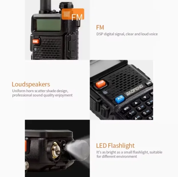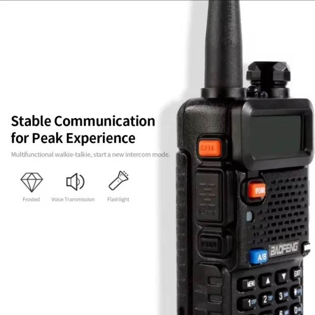 Baofeng UV-5R je dual-band radio stanica visoke kvalitete. Radi na frekvencijama 136-174MHz i 400-480MHz. Ima 128 memorijskih kanala i FM modulaciju. Kompaktna je i laka za nošenje, idealna za profesionalnu ili rekreativnu upotrebu.