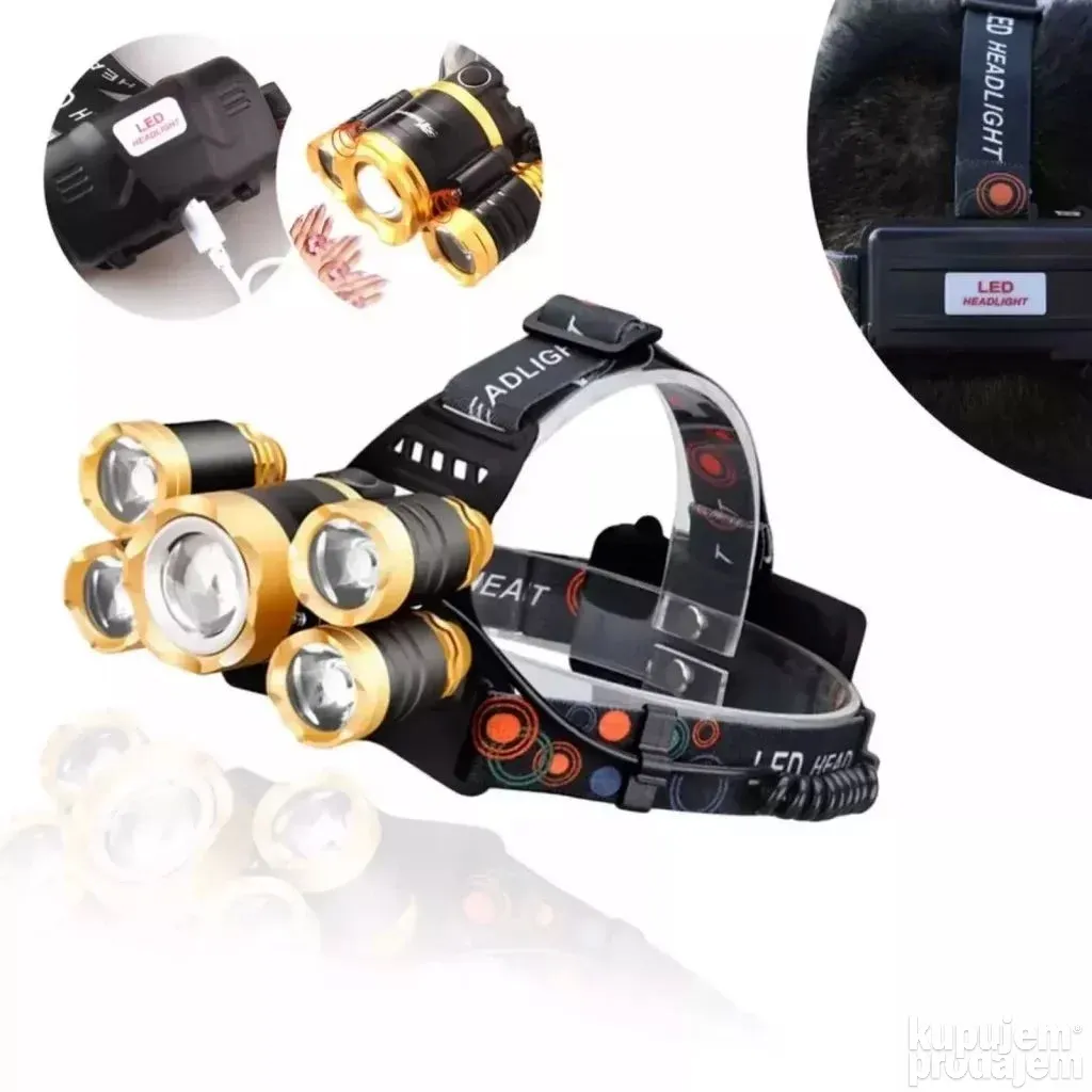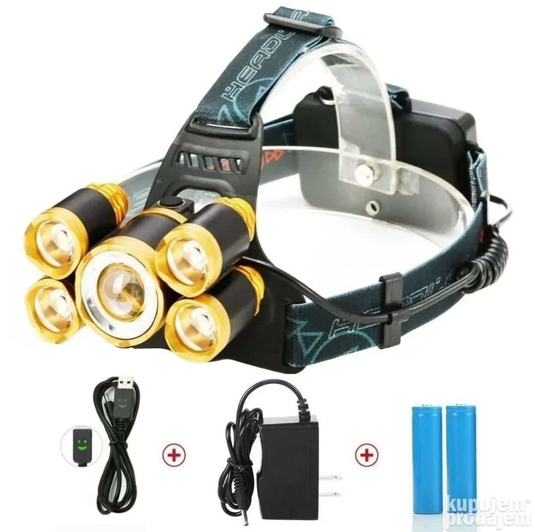 Ova lampa za glavu je savršen saveznik za sve vaše noćne aktivnosti! Sa 5 Cree T6 LED dioda i osvetljenjem do 300 metara, pruža snažnu i jasnu svetlost za kampovanje, pecanje, lov ili rad u mraku ️.