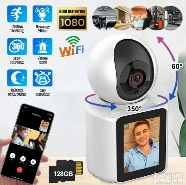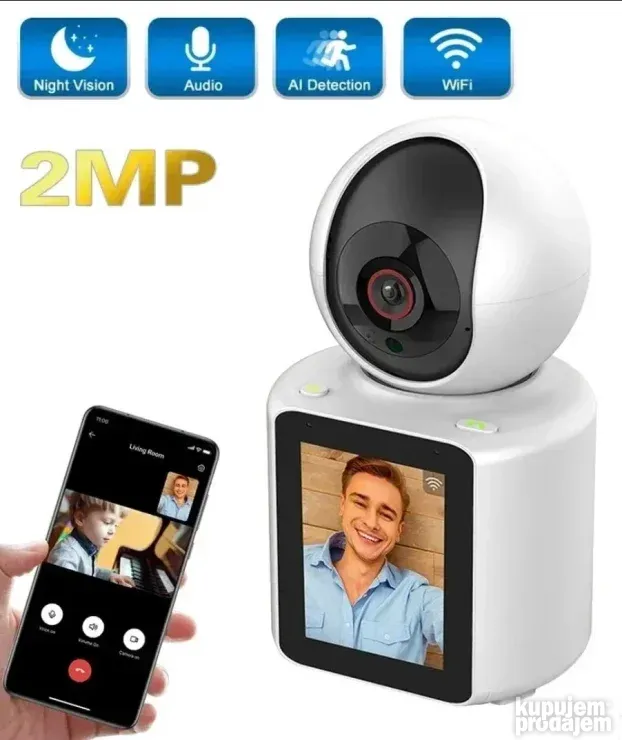 Bebi monitor IP kamera sa video pozivom omogućava kristalno jasan 1080P HD video. Ekran od 2.8 inča i dvosmerna kamera pružaju interakciju sa decom, starijima ili ljubimcima.