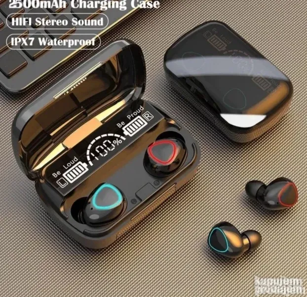 Naše slušalice kombinuju kvalitetan zvuk, dugotrajnu bateriju i praktičnu kutiju za punjenje koja može puniti i telefon. Vodootpornost i napredna Bluetooth tehnologija čine ih idealnim izborom za svakodnevnu upotrebu, sport i putovanja.