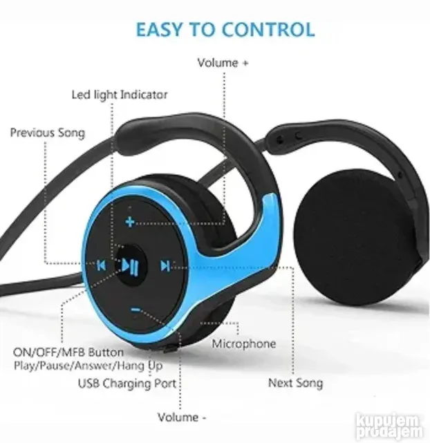 Kontrolna dugmad omogućavaju odgovaranje na pozive, menjanje numera i podešavanje jačine zvuka. Mikrofon sa poništavanjem buke obezbeđuje jasne pozive u bučnim okruženjima.