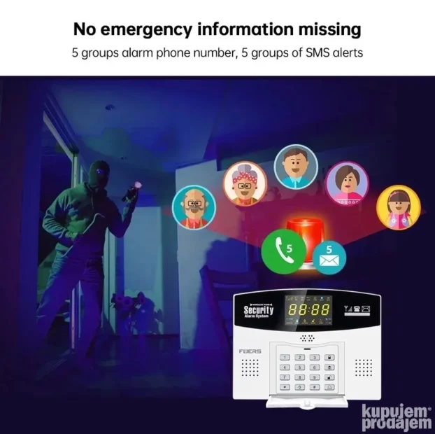 Alarm šalje obaveštenja na telefon u slučaju provale, požara ili pokreta, čak i ako nema struje zahvaljujući GSM modulu.