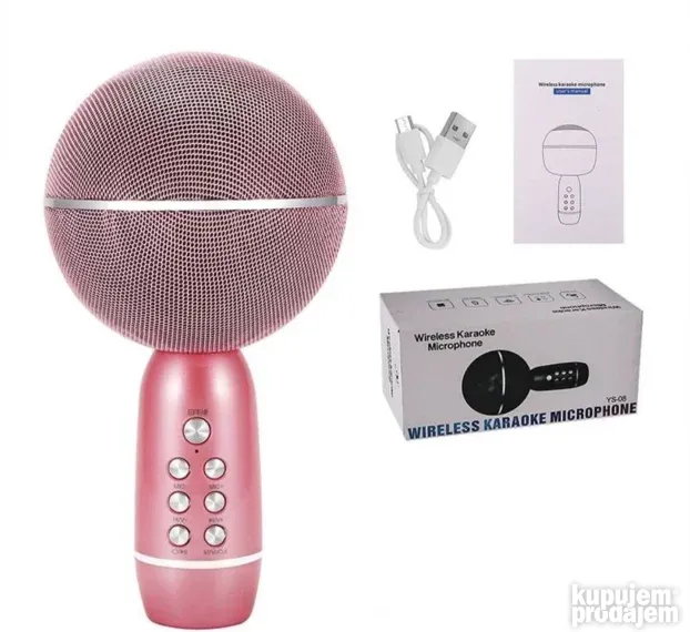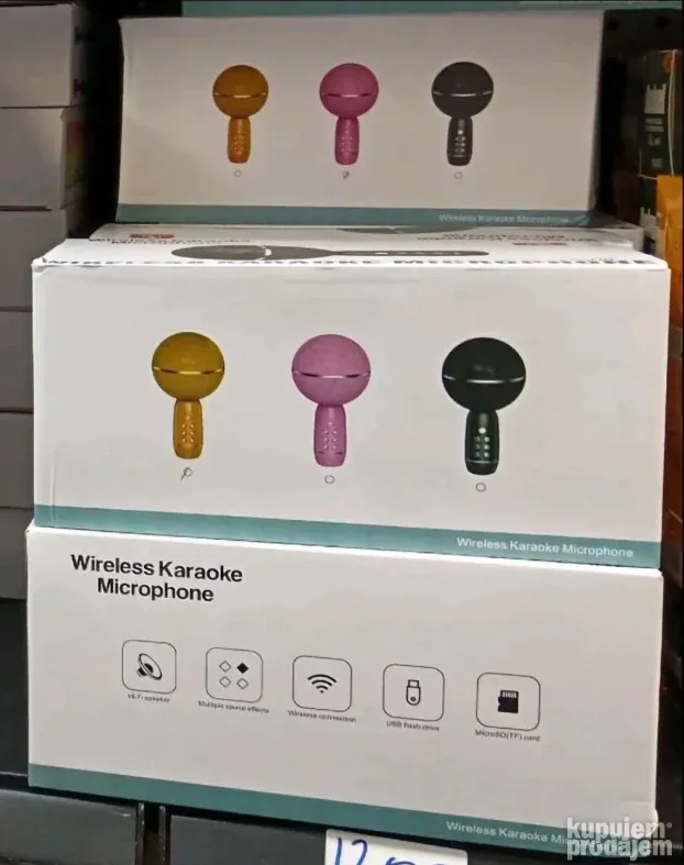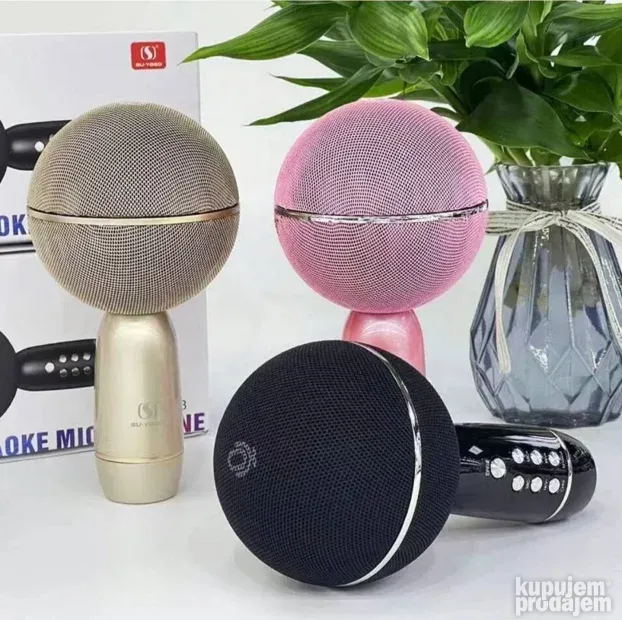 Bežični karaoke mikrofon omogućava pevanje i reprodukciju muzike istovremeno. Povezuje se preko Bluetootha sa mobilnim telefonom, tabletom ili sličnim uređajima. Ugrađeni zvučnik emituje jak i čist zvuk. Podržava USB stick i SD karticu za muziku.