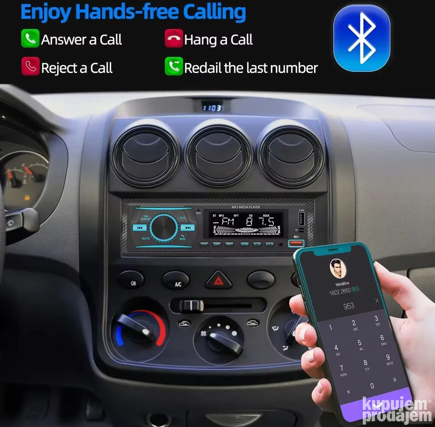 Uživajte u moćnom zvuku i naprednim funkcijama sa Bluetooth Auto MP3 plejerom koji ima snagu 4x60W. Ovaj uređaj podržava Bluetooth 5.1 sa hands-free pozivima, tri opsega FM radija i skladištenje do 18 stanica. Ima USB i TF karticu za reprodukciju muzike, AUX ulaz i daljinski upravljač za potpunu kontrolu tokom vožnje.