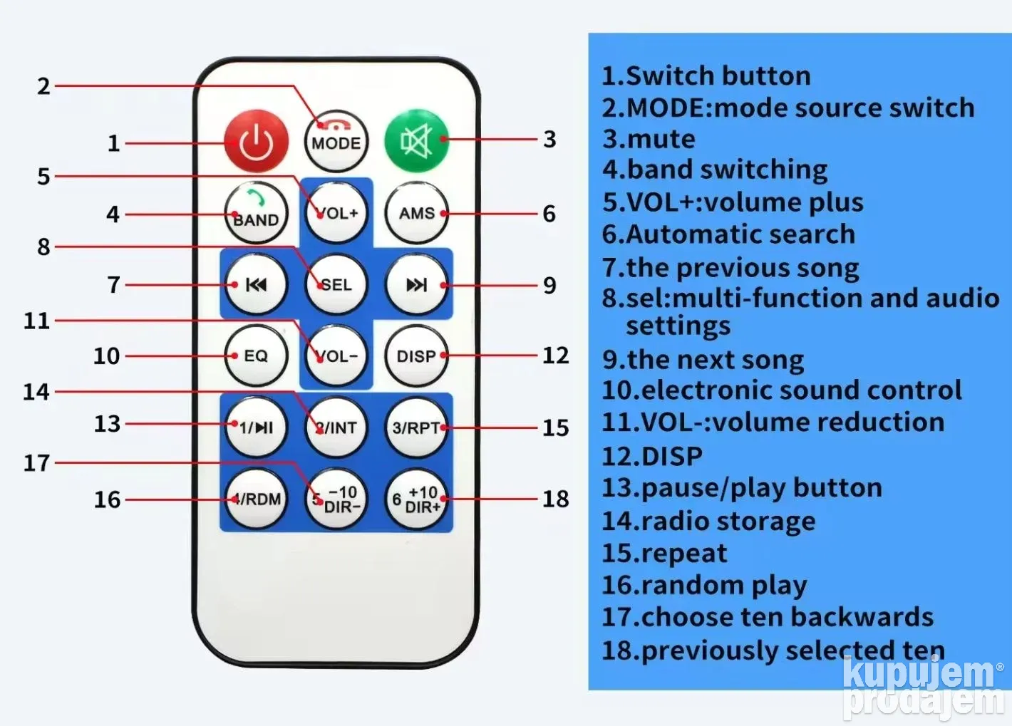 Ovaj auto radio uređaj je savršen za ljubitelje muzike koji žele moćan zvuk i jednostavnu kontrolu. Sa brojnim opcijama povezivanja i modernim funkcijama, omogućava bezbednu i prijatnu vožnju. Garancija od 2 godine daje dodatnu sigurnost kupovine.