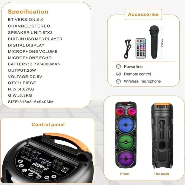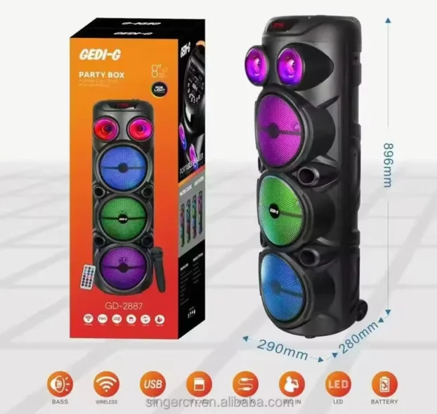 Uronite u svet zabave uz naš vrhunski Bluetooth karaoke zvučnik GD-2887, idealan za svaku priliku, bilo da je reč o kućnoj zabavi ili događaju na otvorenom. Ovaj prenosivi zvučnik kombinuje moćan zvuk, impresivne vizuelne efekte i praktične funkcije za nezaboravno muzičko iskustvo.