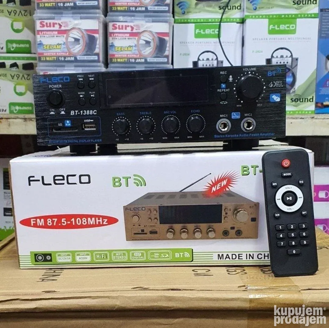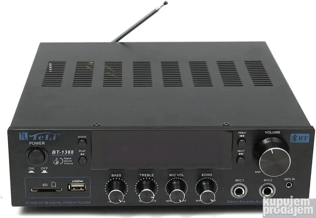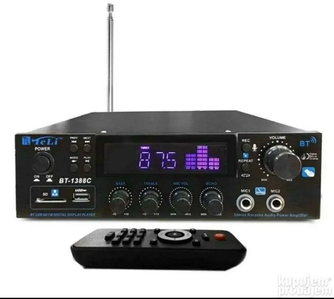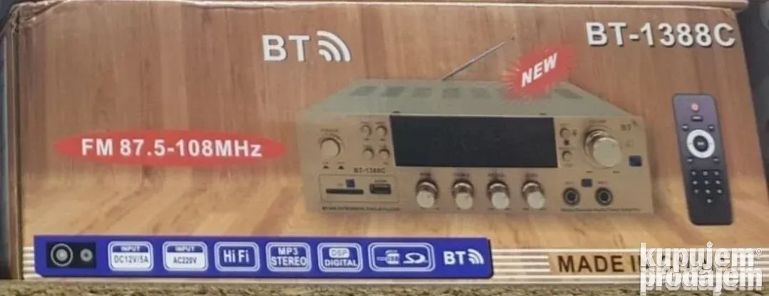 Ako tražite kvalitetno Bluetooth pojačalo sa odličnim zvukom i dodatnim funkcijama, model BT-1388C je pravi izbor. Ovo pojačalo podržava FM radio, USB, SD karticu i Bluetooth konekciju, što omogućava lako bežično povezivanje sa vašim uređajima. Sa dva mikrofonska ulaza i kontrolom eha i jačine zvuka, idealno je za karaoke, prezentacije ili kućnu zabavu.