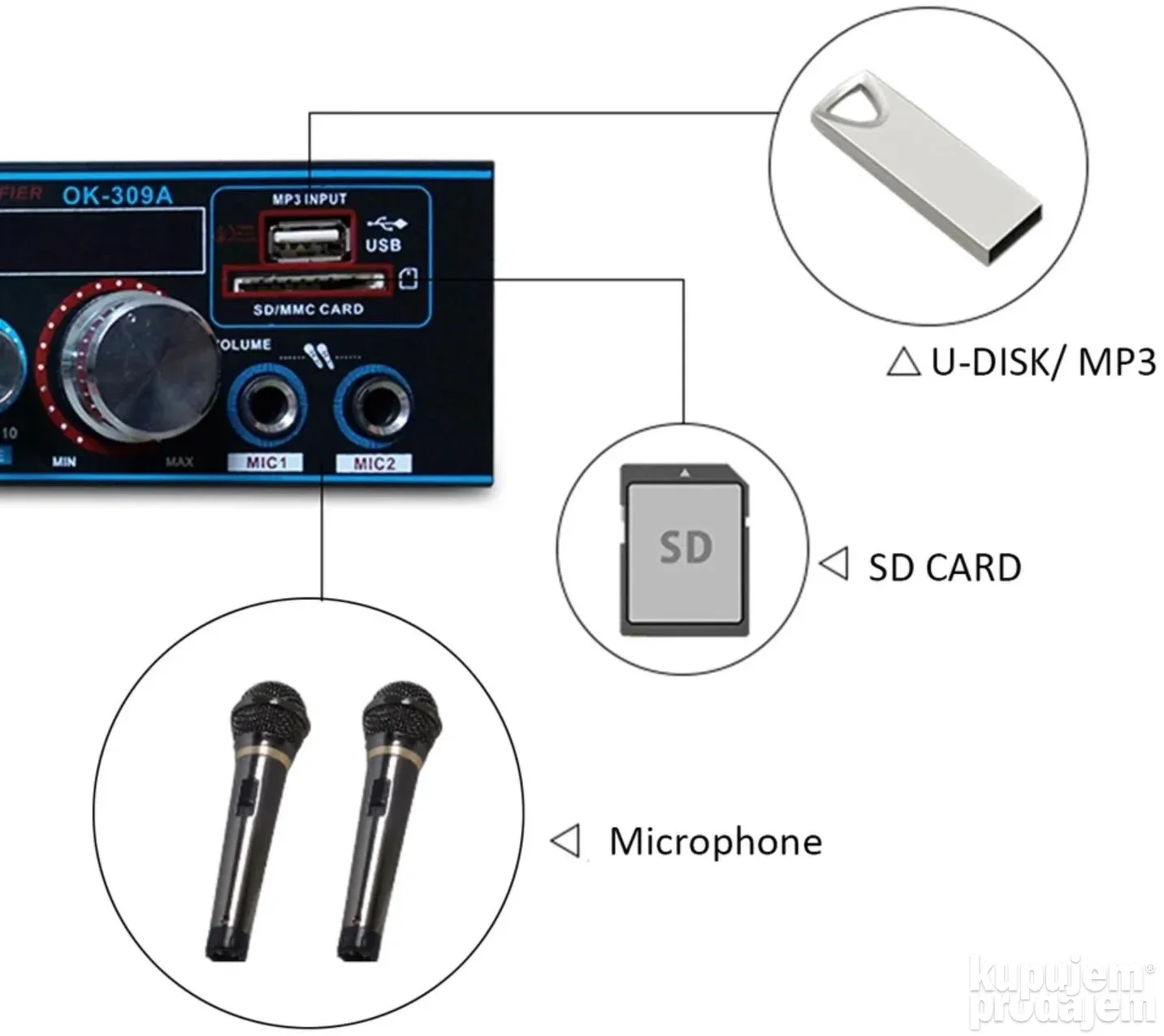 Bluetooth pojačalo BT-309B – Moćan zvuk za karaoke i muziku!