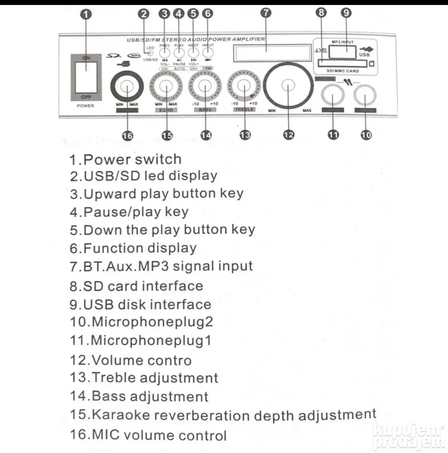 Bluetooth pojačalo BT-309B sa FM radio i karaoke funkcijom