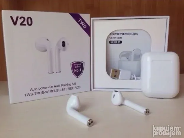 V20 pruža čist i kvalitetan zvuk. Slušalice se pune za oko 1h, dok kutijica ima kapacitet od 400mAh. Zvuk razgovora ide na obe slušalice.
