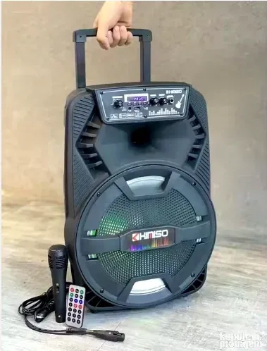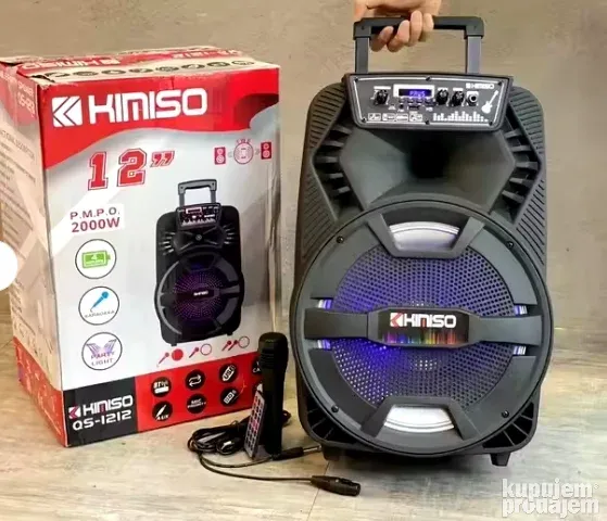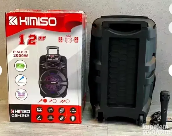 KIMISO QS-1212 je prenosivi Bluetooth zvučnik veličine 12 inča, idealan za karaoke, zabave i sve vrste događaja. Snaga od 30W pruža čist i kvalitetan zvuk. U paketu dolazi mikrofon sa kablom od 2,5m, USB kabl za punjenje i daljinski upravljač. Podržava Bluetooth, USB, TF karticu i FM radio, sa litijum-jonskom baterijom za dugotrajno korišćenje.