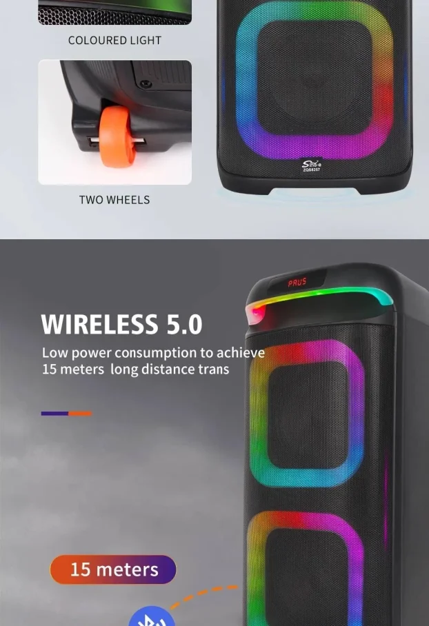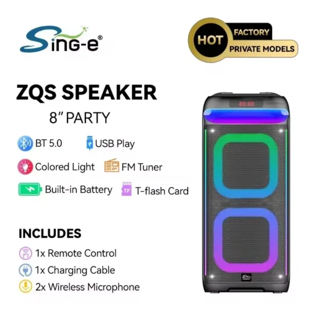 Otkrijte ultimativnu zabavu sa našim Bluetooth karaoke zvučnikom ZQS8257, dizajniranim da oživi svaku žurku ili okupljanje. Sa dvostrukim 8-inčnim basovima i impresivnim RGB LED osvetljenjem, ovaj prenosni zvučnik pruža snažan zvuk i vizuelni ugođaj koji će oduševiti sve prisutne.