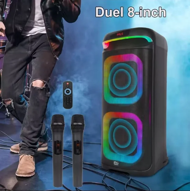 Bluetooth zvučnik 2×8″ karaoke | 2 bežična mikrofona RGB