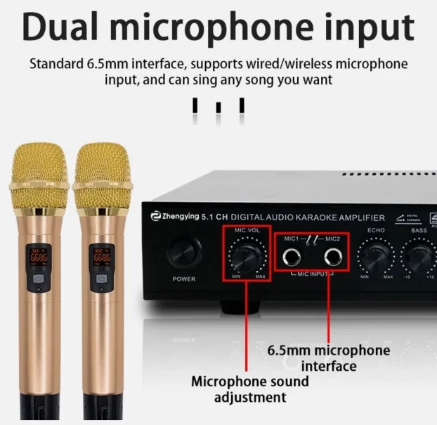 - ✔ Dva ulaza za mikrofone sa podešavanjem reverberacije (karaoke funkcija)