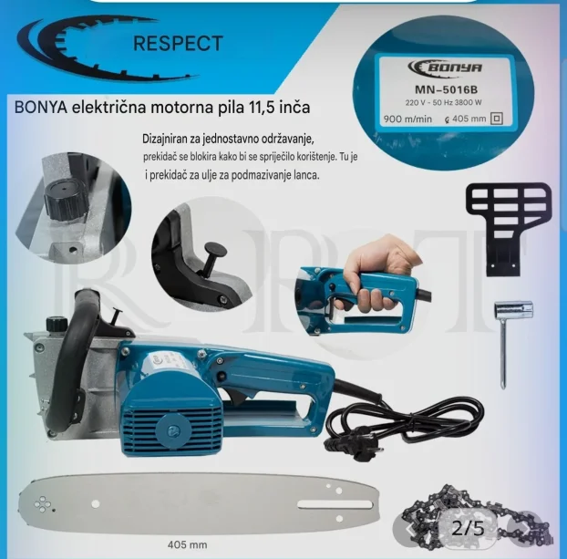 Snažna BONYA električna motorna testera od 3800W za lako sečenje.