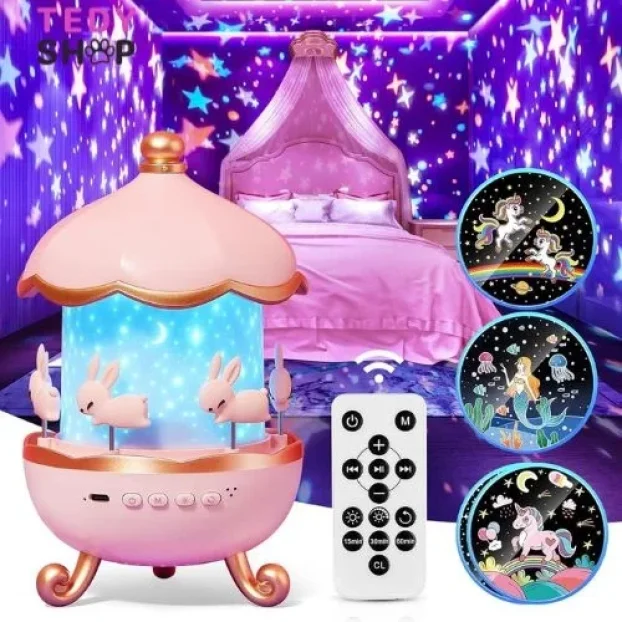 Predstavljamo vam Čarobni Muzički Rotacioni Projektor Zeka Vrteška – savršen dodatak za svaku dečiju sobu ili spavaću sobu. Ovaj preslatki zeka nije samo dekoracija; on stvara atmosferu punu mira, magije i čarolije.