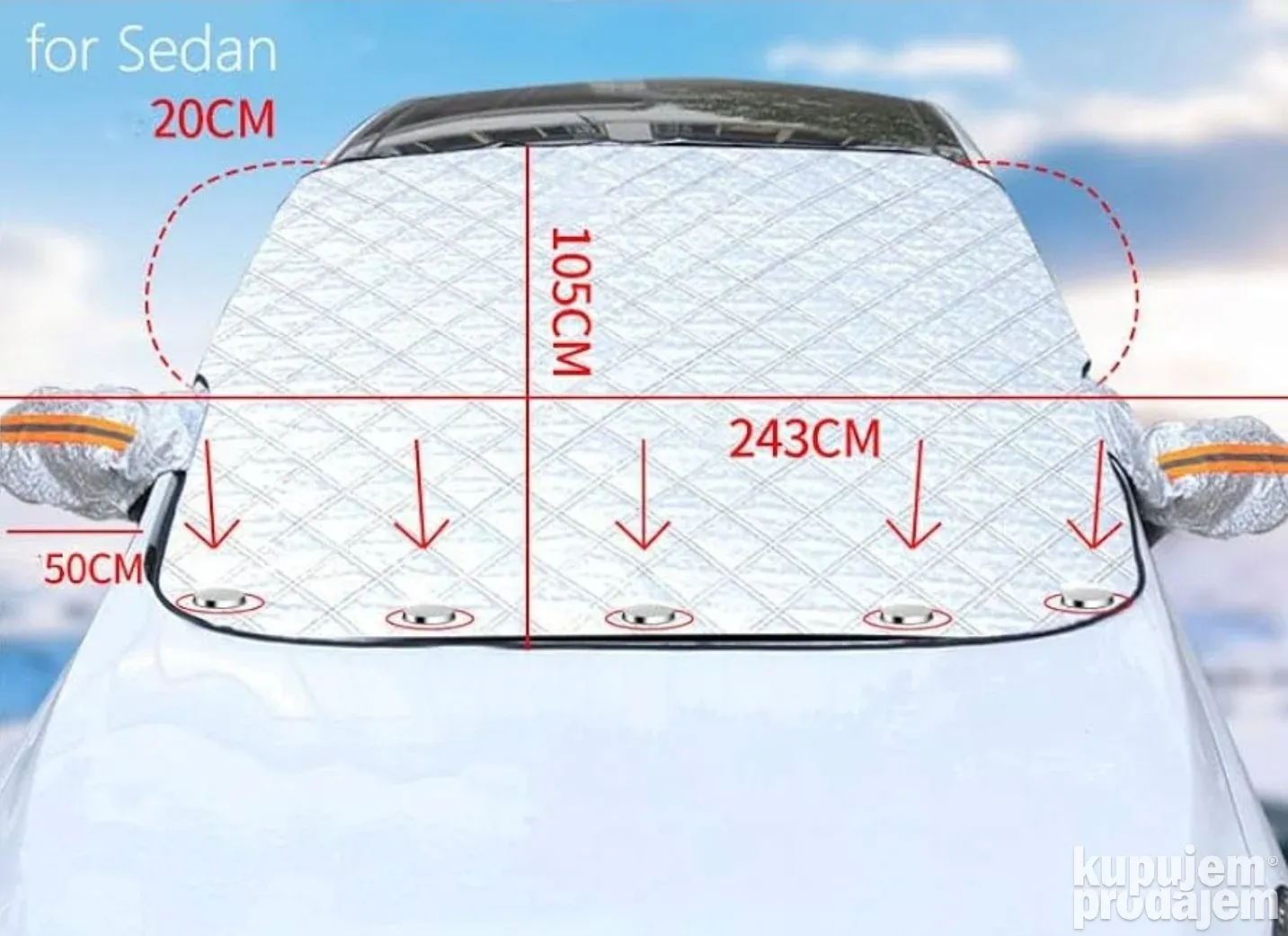 Ova cerada za vetrobransko staklo, bočna stakla i retrovizore. Pruža potpunu zaštitu vašeg automobila od leda, snega, mraza i štetnih sunčevih zraka. Idealna je za zimske i letnje mesece – sprečava smrzavanje zimi i pregrevanje enterijera leti.