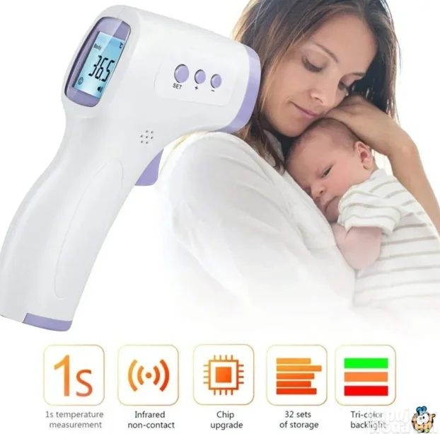 Merač temperature tela i objekata (voda, mleko, hrana). Izuzetno brz (0,5 sekundi) i precizan. Nežno merenje bez uznemiravanja. Idealno za bebe i celu porodicu! ️