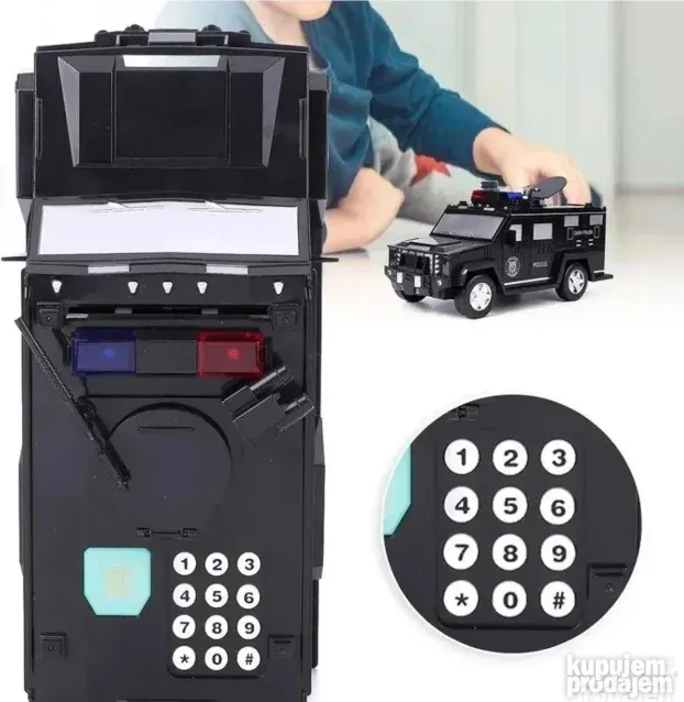 Dečija Kasica Sef Policijski Automobil | PIN & Otisak Prsta