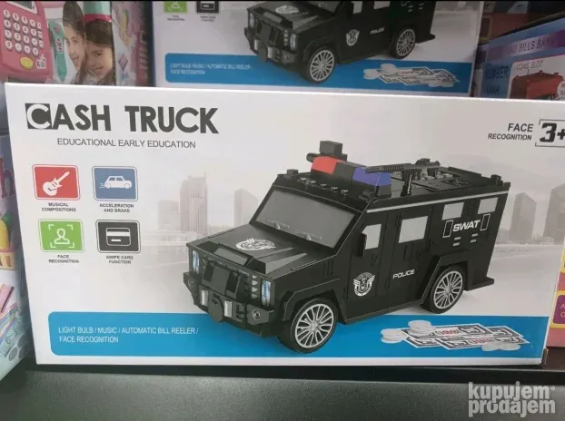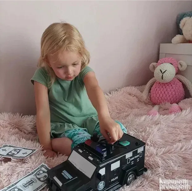 Naučite mališane da štede na zabavan način! Ova kasica u obliku policijskog automobila automatski prihvata novac i otvara se isključivo uz PIN kod i simulaciju otiska prsta. Savršen poklon za razvoj finansijske pismenosti!