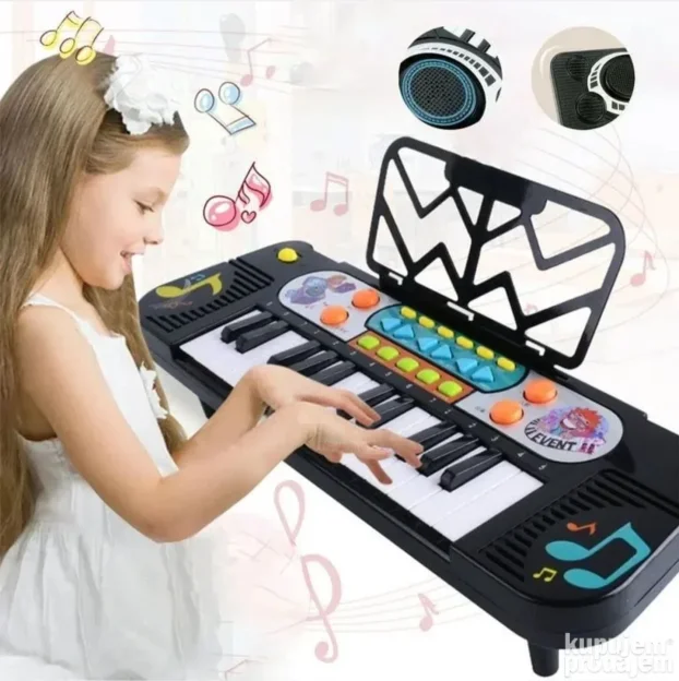 Ovaj elektronski dečiji sintisajzer sa 25 tastera je savršeno dizajniran za male muzičare, pomažući deci da nauče osnove muzike i razvijaju svoje muzičke talente od najranijeg uzrasta.