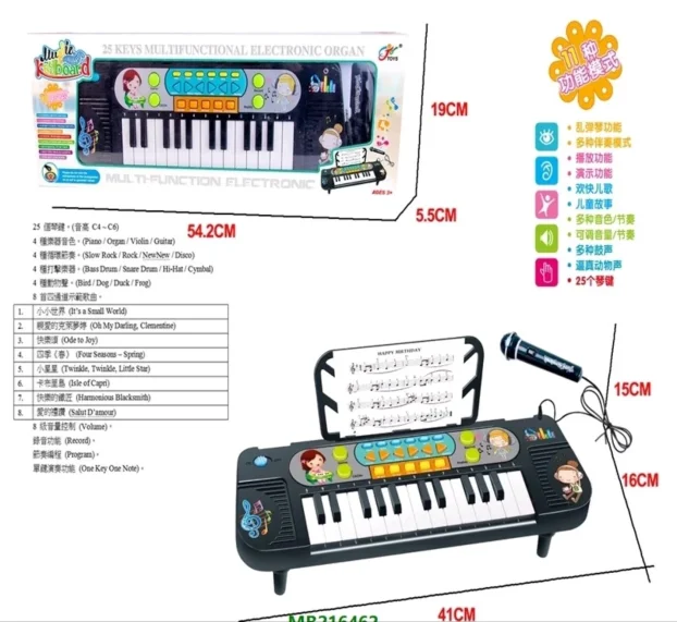 • ✔ 25 standardnih tastera: omogućava sviranje kao na pravoj klavijaturi, ali je jednostavniji za rukovanje.