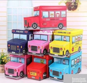Dečiji tabure sa korpom za igračke predstavlja savršeno 2u1 rešenje za svaki dečiji prostor. Ovaj praktičan model u obliku autobusa omogućava lako odlaganje kockica, autića, slagalica i sitnih igračaka, dok istovremeno služi kao udoban tabure za sedenje.