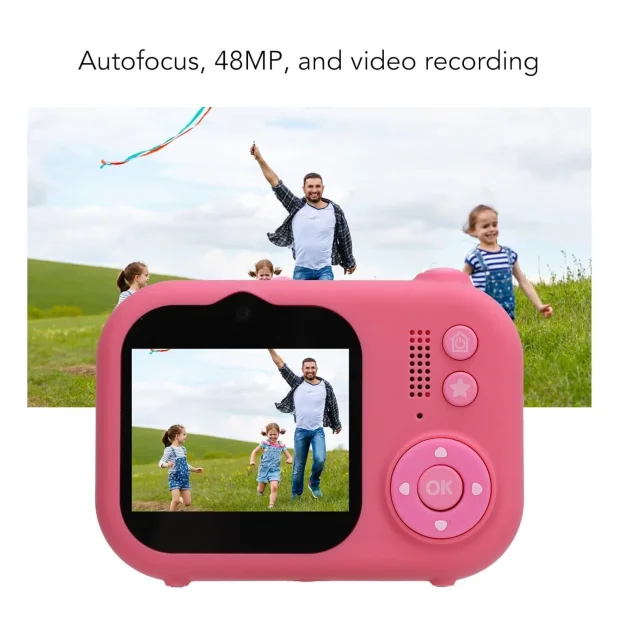 Ova dečja kamera ima dvostruki objektiv od 48 MP. Omogućava deci da lako zabeleže svaki trenutak. LCD ekran od 2,4 inča olakšava pregled i rukovanje. Šareni dizajn čini fotografisanje zabavnim. Kamera ima više režima snimanja, prilagođenih deci. Kompaktna je i prenosiva, pogodna za korišćenje kod kuće i na otvorenom.