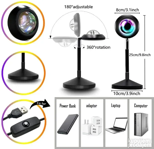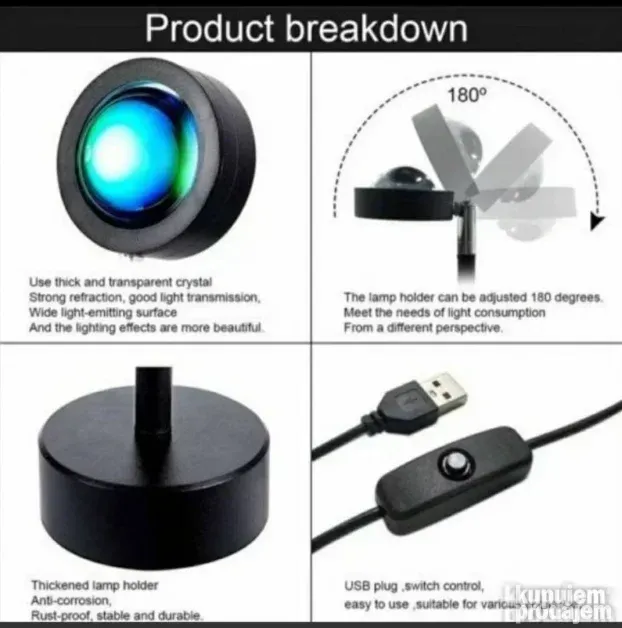 Unesite magiju zalaska sunca u svoj prostor sa ovom Dekorativnom Sunset lampom sunce projektor RGB 16 boja. Idealna je za spavaće sobe, dnevne sobe, barove, kafiće ili čak za automobile i kamper kućice. Kreira romantičnu i opuštajuću atmosferu, dok se istovremeno može koristiti kao rekvizit za fotografije i snimanje video sadržaja.