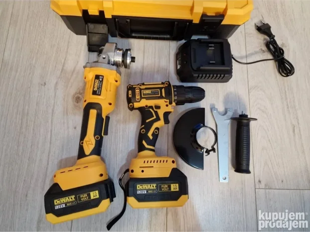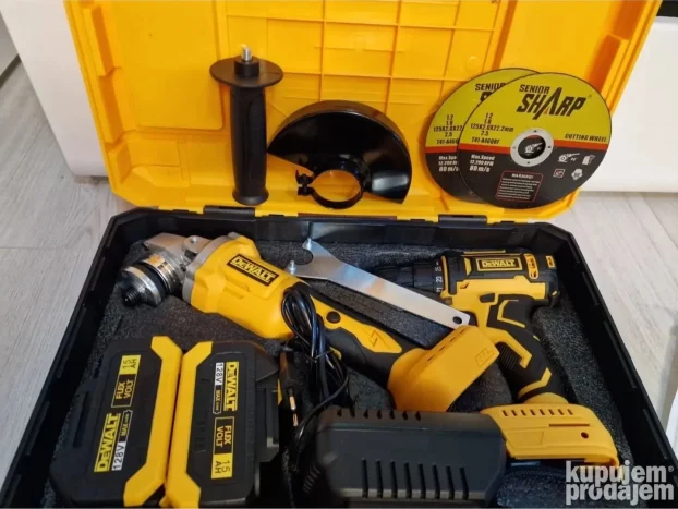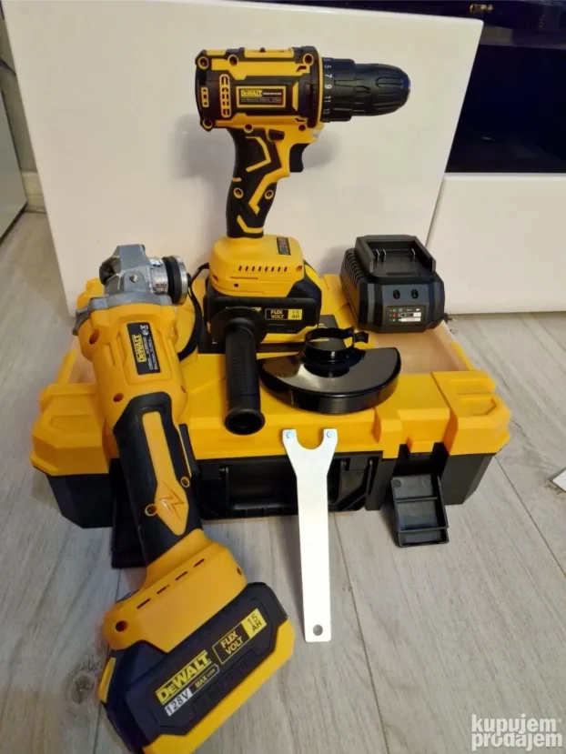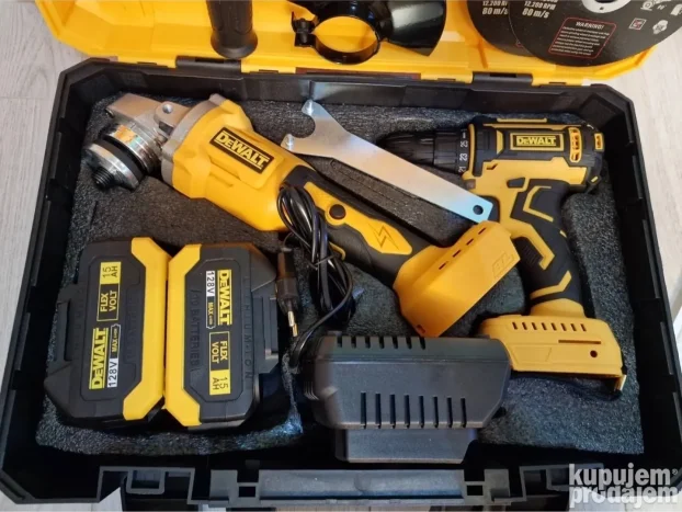 Snažan Dewalt aku set: šrafilica + brusilica na 128V.